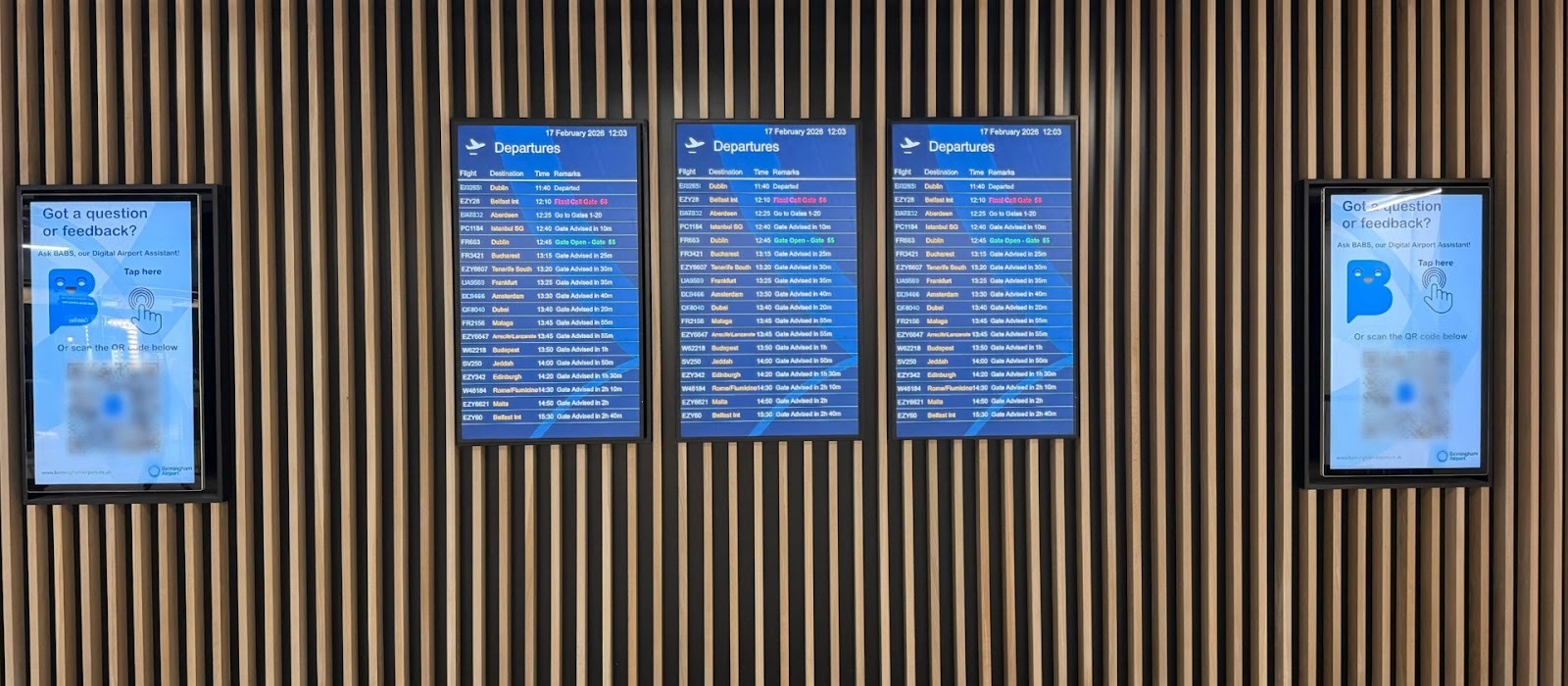 At Birmingham Airport (BHX), this situation arose when a spell of snow swept across the city in early-January due to Storm Goretti, leading to the closure of the airport and flight suspensions. To better manage heightened periods of stress, BHX Airport introduced Hello Airport, an in-terminal Digital team member to alleviate pressure on already-stretched teams.